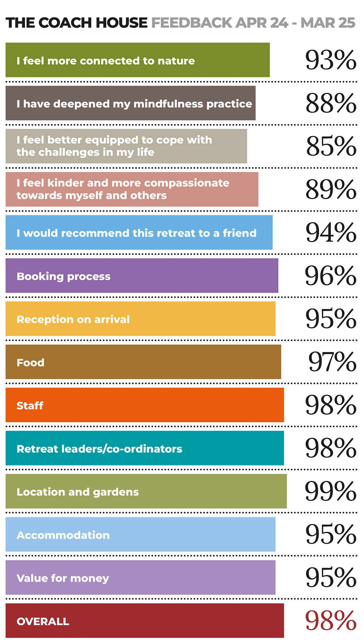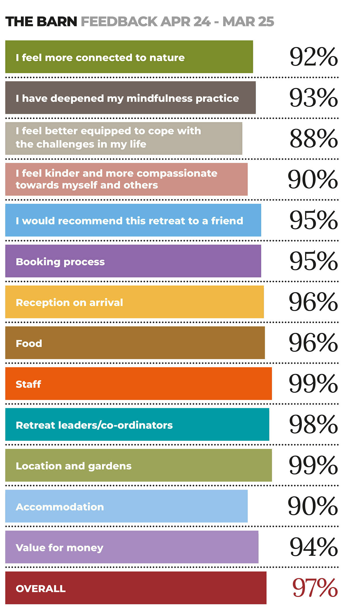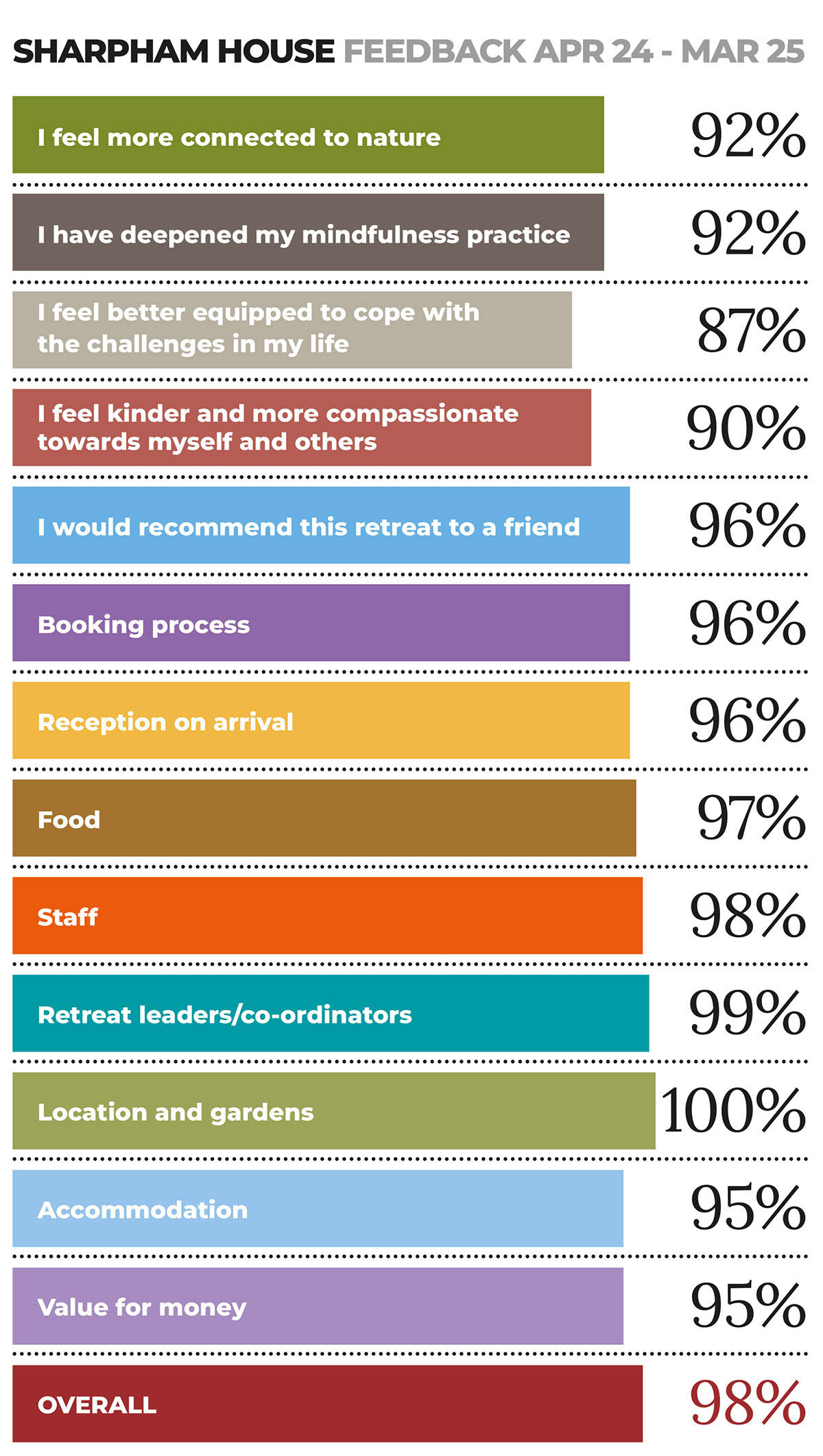 At the end of each retreat, we ask participants to share the changes in themselves and, more widely, rate us on the service we've given them.