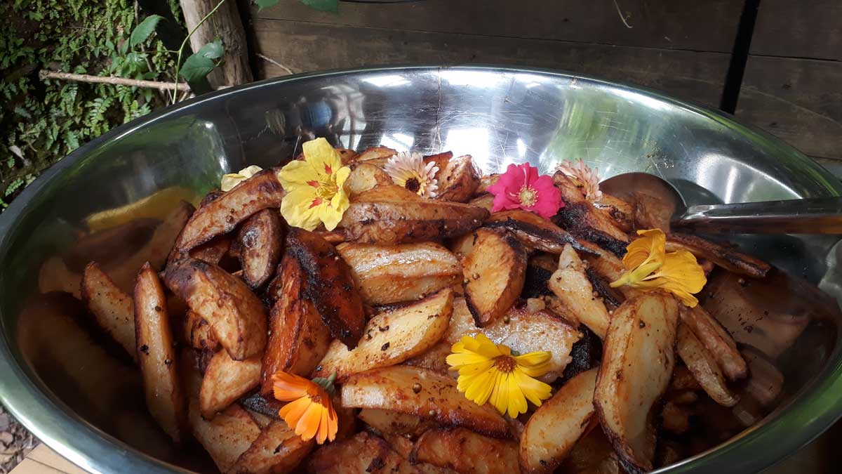 We are ever grateful to our Tuesday volunteers who come rain or shine to help us in the gardens here and to celebrate this we spent a summer Tuesday, not weeding or planting, but harvesting produce from the garden together and cooking up a delicious feast.